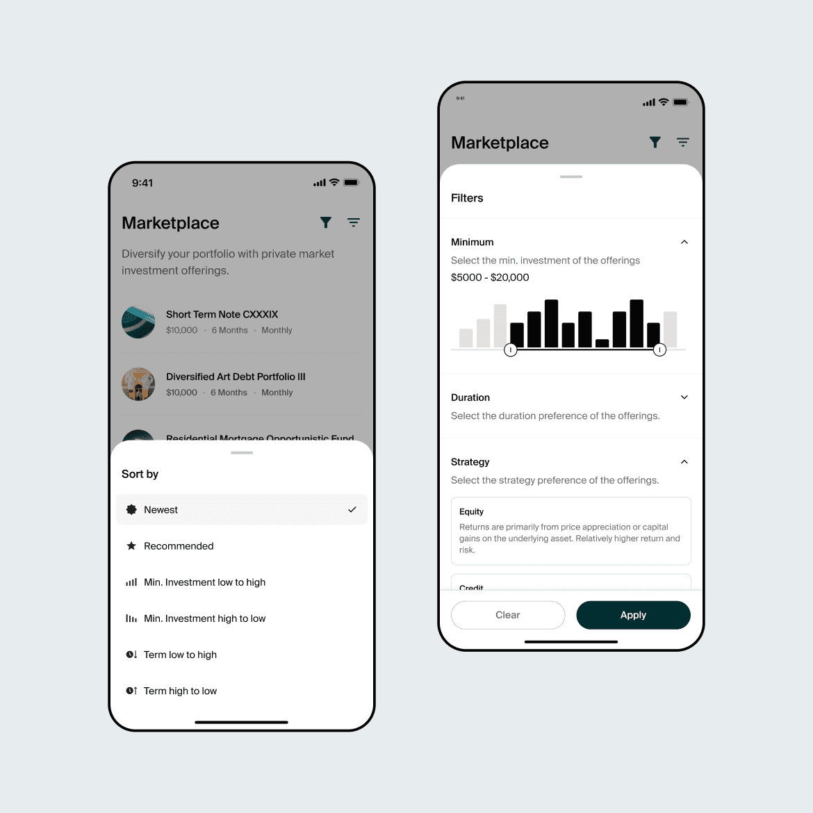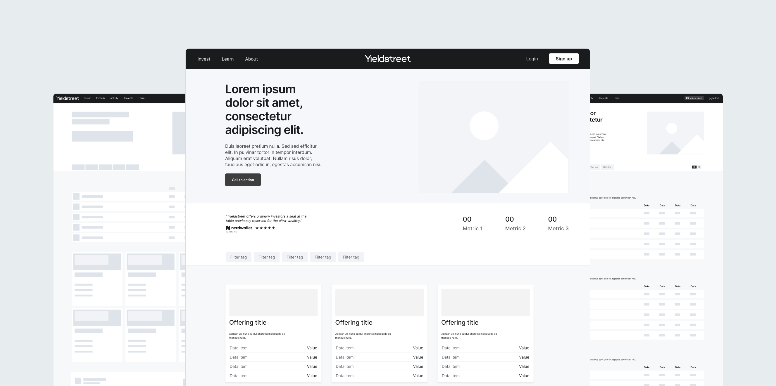 I was a Product Designer on the Yieldstreet Marketplace redesign, now Willow Wealth. The marketplace was the gateway for all investments on the platform, and it was struggling to keep up.