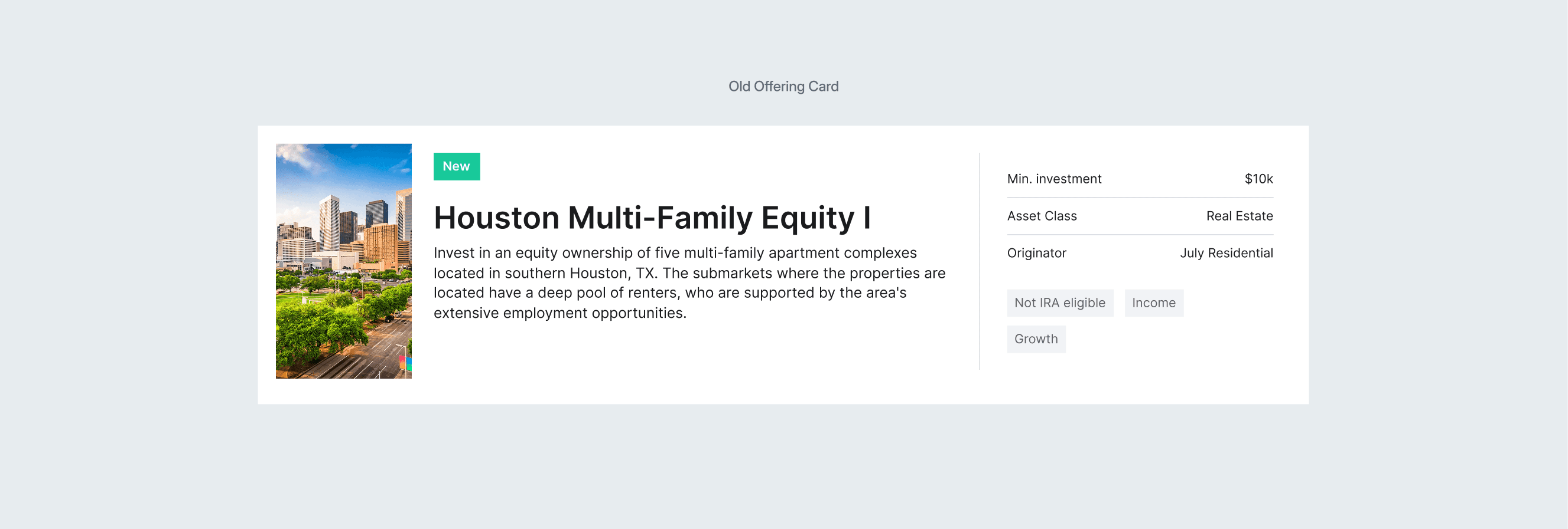 If we shift from a stacked list to a scannable grid, improve filtering, and surface the right information on each card, investors will find and compare offerings faster and convert at a higher rate.