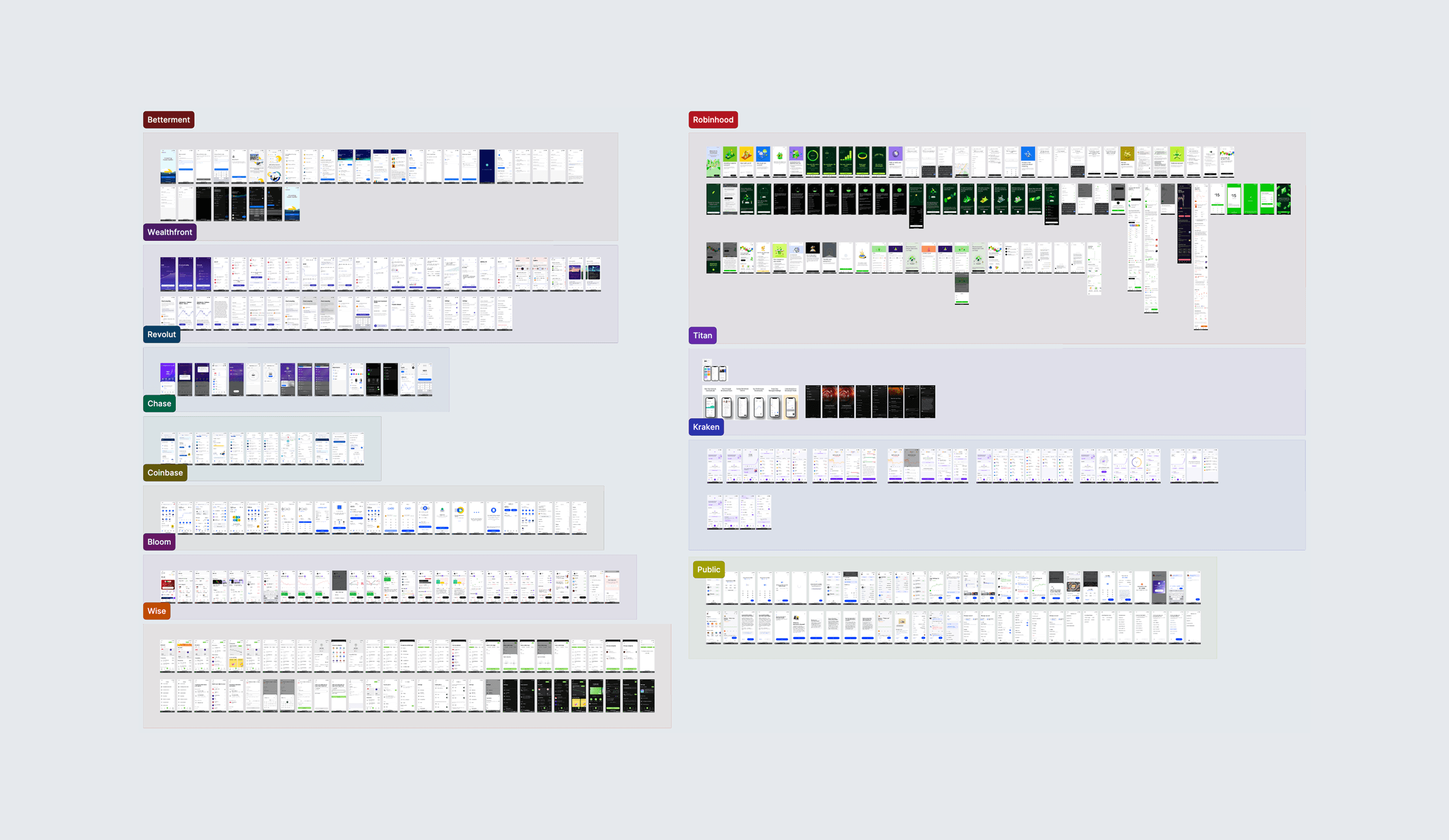 A study of popular fintech apps was conducted to identify strengths and weaknesses in the market. This analysis focused on three key areas: onboarding, dashboard presentation, and investment flows. Special attention was paid to how competitors handled complex data display on small screens while maintaining high user trust. The insights gained directly informed the Visual Direction and helped establish best practices for streamlined navigation and clear information hierarchy in the new design.